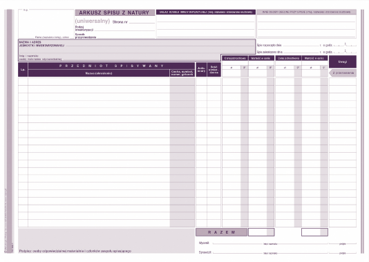 Arkusz spisu z natury z podwójną wyceną (uniwersalny)