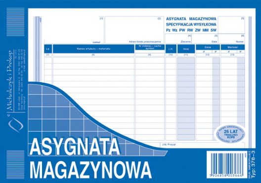 Asygnata magazynowa A5 378-3Asygnata magazynowa A5 378-3