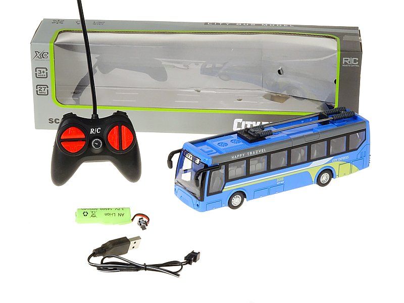 trolejbus 1:32 na radio, 21x5x6cm, światło, 4 funkcje, ładowarka USB; 35x10x7,5cm, W/B