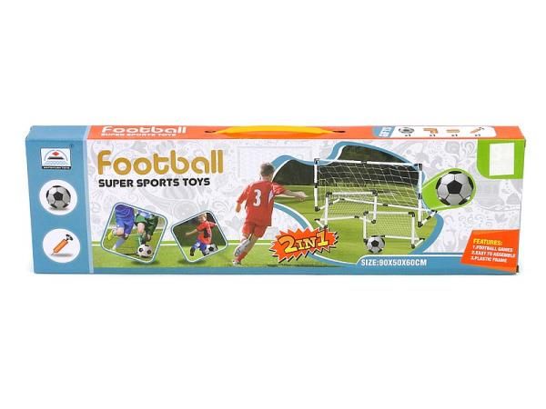 Zestaw sportowy (bramki z siatką, piłka i pompka). Z dostępnych elementów możemy zbudować dwie małe bramki, bądź jedną dużą. Specjalne zaczepy pozwalają na przymocowanie jej do podłoża. Po założeniu siatki możemy zacząć grę w piłkę. Komplet jest łatwy w konstrukcji. Umożliwia rozegranie meczu na podwórku. Nie musimy dokupywać piłki i pompki, ponieważ znajdują się one w opakowaniu. To idealny prezent dla młodego sportowca, który pozwoli mu aktywnie spędzać czas. Wymiary małej bramki: 46x31x27cm Wymiary dużej bramki: 90x60x50cm Wymiary opakowania: 61x5x18cm Wiek: 3+