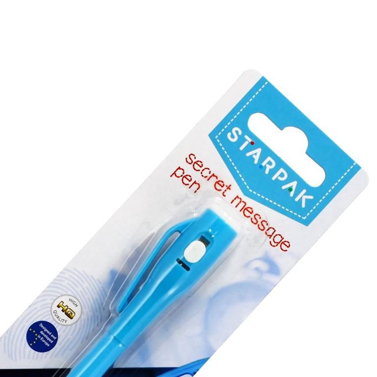Zalety prroduktu: Magiczny długopis z lampką LED zamykany posiada tusz widoczny tylko w świetle wbudowanej latarki UV. Tusz podczas pisania jest niewidoczny, aby przeczytać niewidzialną wiadomość należy podświetlic kartkę. To świetna zabawa w ukrywanie informacji przed niepożądanymi osobami i idealny sposób by strzec swoich sekretów. Zasilanie na baterie 3x AG3 LR41 1,5V załączonymi w zestawie. Wymiary opakowania dł. x wys. gł cm 6x19x2, waga opakowania kg : 0,04 kg.Przeznaczony dla dzieci w wieku 3 .Produkt pakowany na blistrze.Pakowany iner po 12szt , karton 144szt.