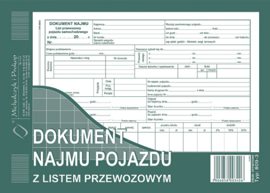 Strona główna » DRUKI » MICHALCZYK I PROKOP » INNE DRUKI » Dokument najmu pojazdu z listem przewozowym A5 809-3