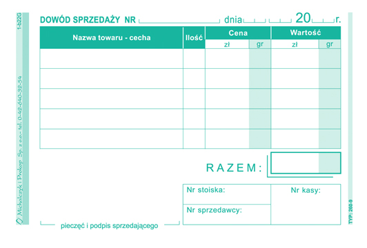 Dowód sprzedaży - Paragon A7 260-9Dowód sprzedaży - Paragon A7 260-9