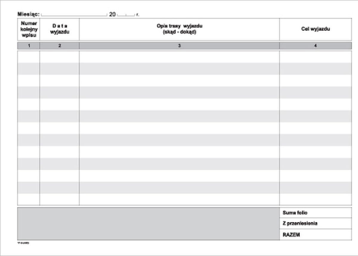 Seria: Ewidencja przebiegu pojazdów (bez kosztów) A5
