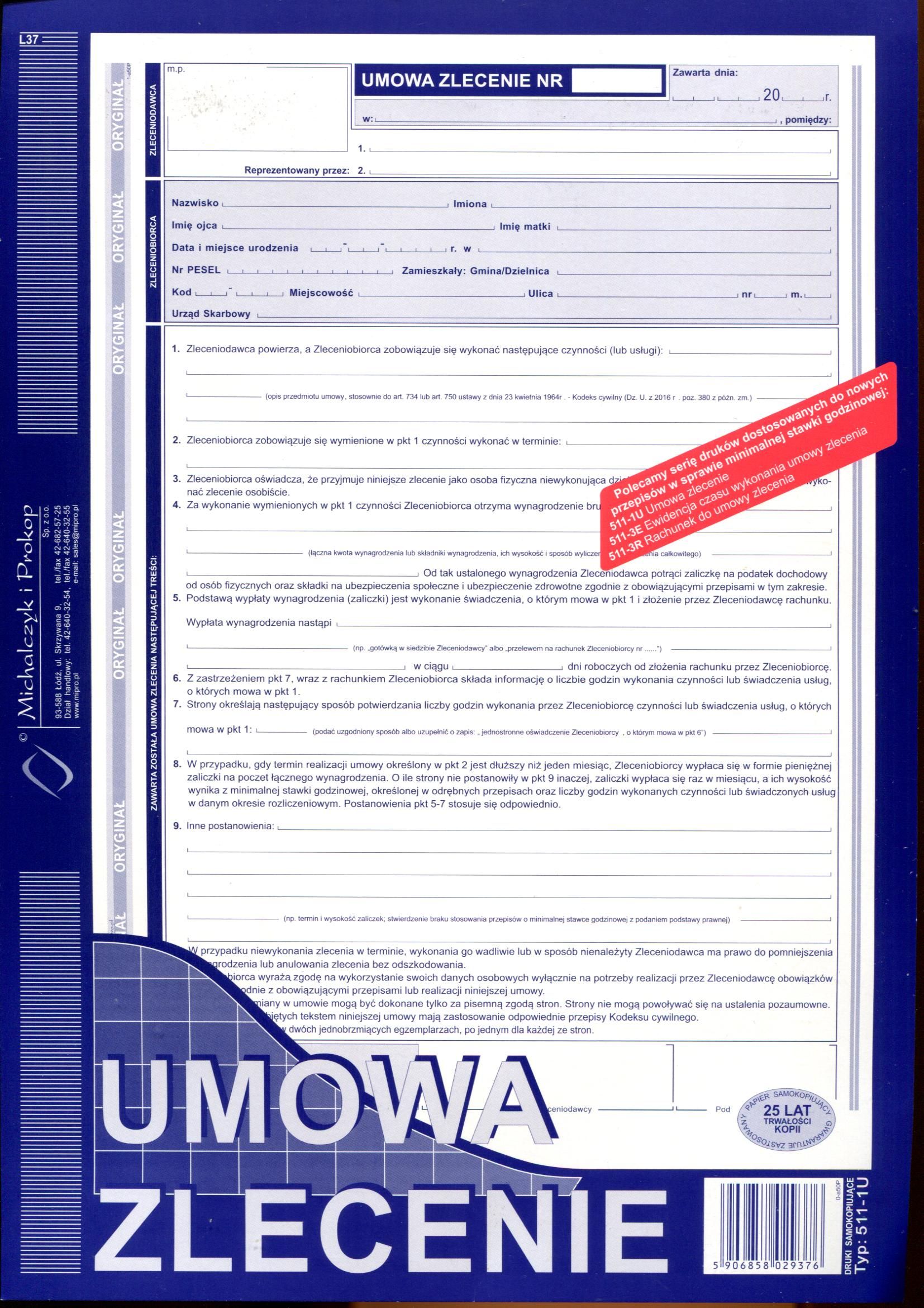 Seria: Umowa zlecenie z rachunkiem A4