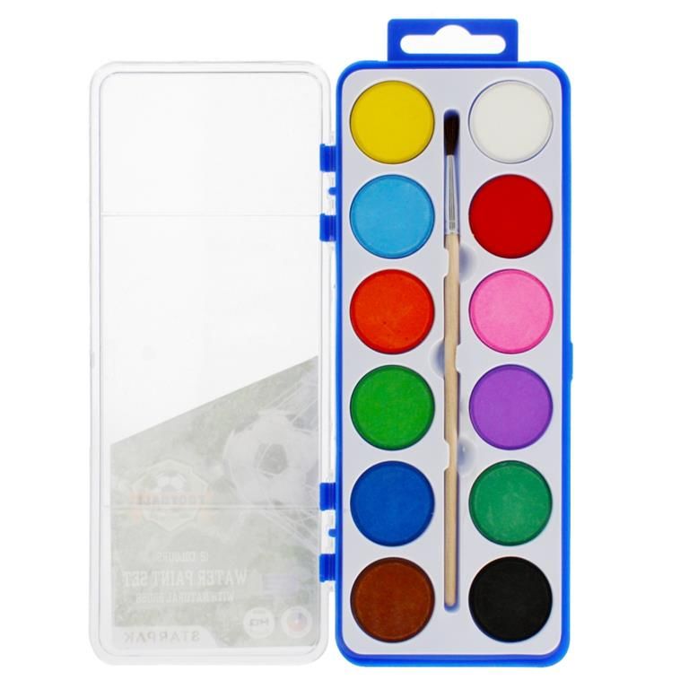 Zalety produktu: Zestaw wysokiej jakości farb akwarelowych w 12 kolorach z kolekcji STARPAK Football. Farby akwarelowe są tzw. farbami suchymi - nie wylewają się i łatwo je zmyć, dlatego są idealne dla najmłodszych artystów. W zestawie znajduje się także drewniany pędzelek. Całość zamknięto w plastikowym pudełku z zawieszką, ułatwiając przechowywanie. Zapoznaj się również z innymi produktami STARPAK z serii Football Zawartość opakowania: farby akwarelowe, drewniany pędzelek. Wymiary/waga: wymiary produktu dł. x wys. gł cm : 8x22x1, waga produktu kg : 0,10 kg. Wymiary opakowania dł. x wys. x gł. cm : 10x27x1, waga produktu bez opakowania kg : 0,10 kg, waga produktu w opakowaniu kg : 0,11 kg. Nie odpowiednie dla dzieci poniżej 3 lat. Pakowany w plastikowe pudełeczko w woreczku z zawieszką.Pakowane iner 12szt / Karton 96szt.
