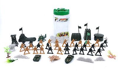 zestaw żołnierzyków z pojazdami, w tubie; 26x14x14cm, Box