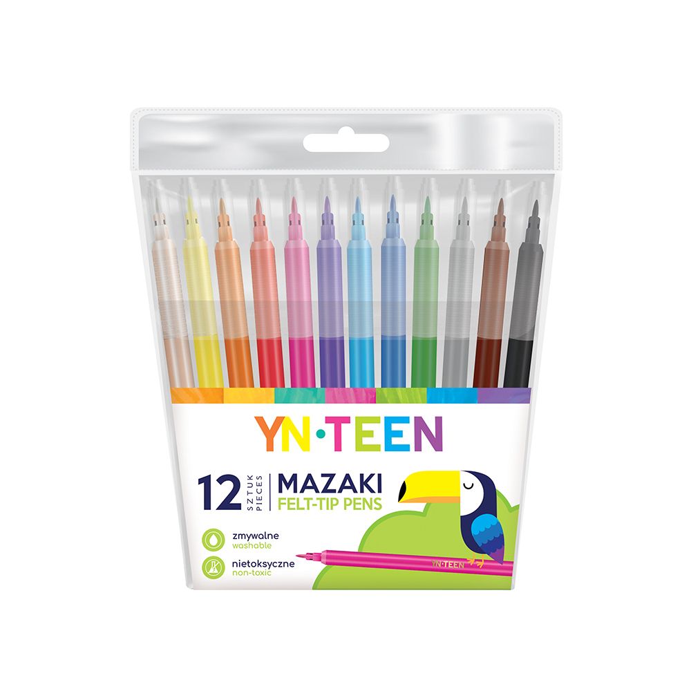 Mazaki o okrągłym profilu i przezroczystej, wentylowanej skuwce. 12 kolorów w opakowaniu. Nietoksyczny, łatwo zmywalny tusz na bazie wody umożliwia bezpieczne użytkowanie i twórczą zabawę bez ograniczeń. Wygodne w przechowywaniu i transporcie, dzięki miękkiemu etui.