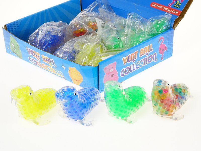 gniotek foka dł.11cm, kolorowe kulki żelowe. display 12szt; 26x20x6cm, Box