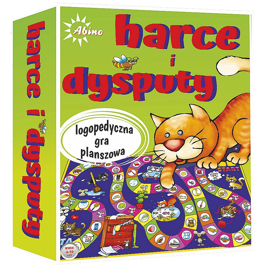Harce i Dysputy to planszowa gra logopedyczna kształtująca prawidłową wymowę głosek z szeregu syczącego, szumiącego i ciszącego.
