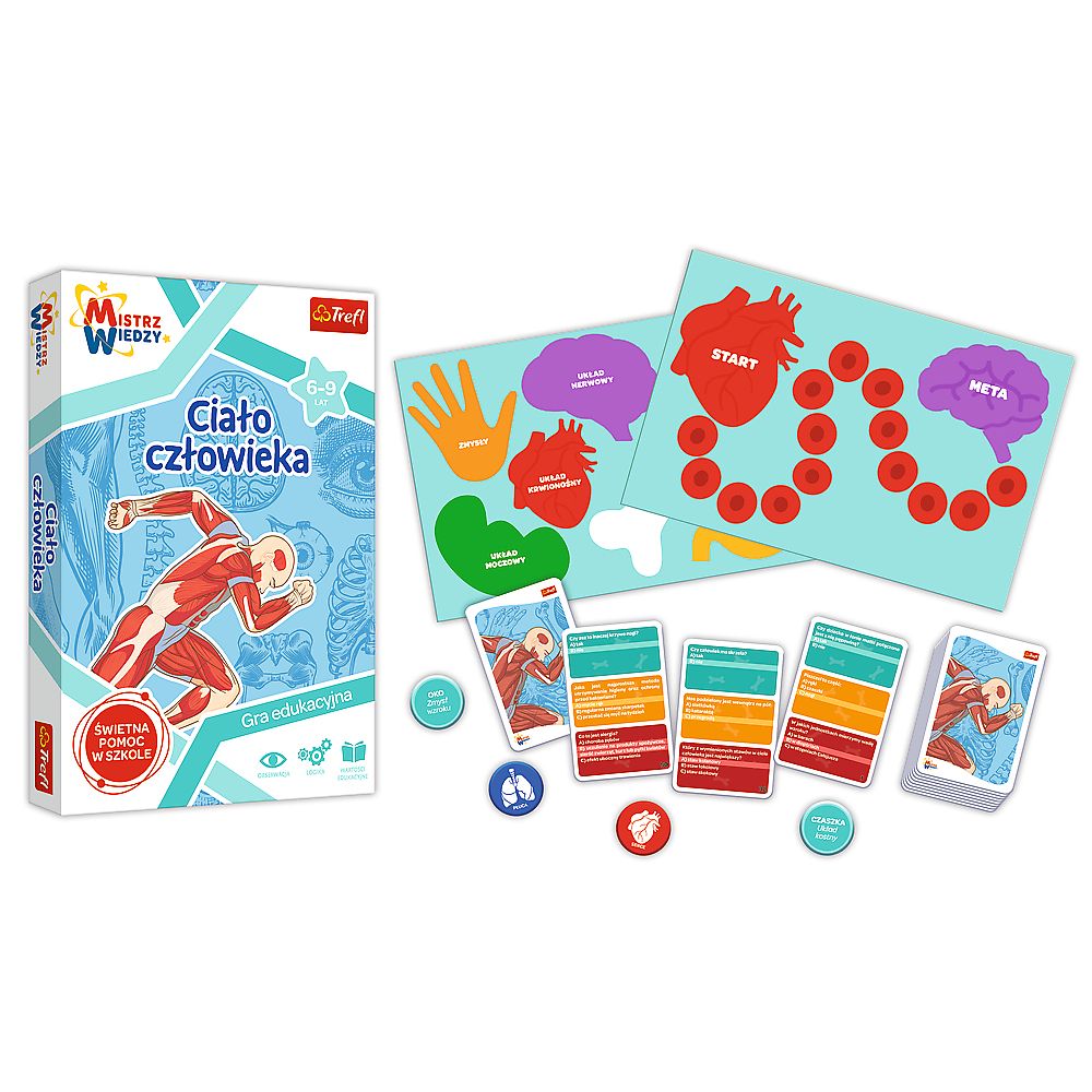 Ciało Człowieka to edukacyjna gra dla dzieci, która łączy quiz, grę planszową, układankę i memos oraz uczy tego, jak wygląda ludzkie ciało. Ponadto zestaw będzie doskonałą pomocą naukową w edukacji wczesnoszkolnej