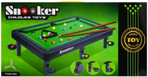 Zalety produktu: rozwija kreatywność dziecka, pozwala na spędzenie wolnego czasu. Praktyczne wydanie stołu bilardowego idealnie nadającego się dla mniejszych graczy. Bilard staje się sportem coraz bardziej popularny jako sposób na spędzenie wolnego czasu. Prezentowany stół jest idealnie zeskalowany z profesjonalnych stołów pełnowymiarowych. Zawartość zestawu: stół, 16 bil, 3 x kijki, trójką, 6 nóżek do stołu. Całość wykonana z plastiku i zamszu. Wymiary/waga/baterie: wymiary produktu (dł. x wys. x gł.) [cm]: 66,5x15,5x38, wymiary opakowania (dł. x wys. x gł.) [cm]: 76x39x5, waga produktu bez opakowania [kg]: 1,14 kg, waga produktu w opakowaniu [kg]: 1,47 kg, nie wymaga zasilania bateriami. Zestaw w kartonie. W kartonie zbiorczym po 9 szt.