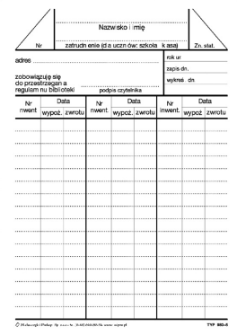 Strona główna » DRUKI » MICHALCZYK I PROKOP » INNE DRUKI » Karta biblioteczna czytelnika A6 980-5