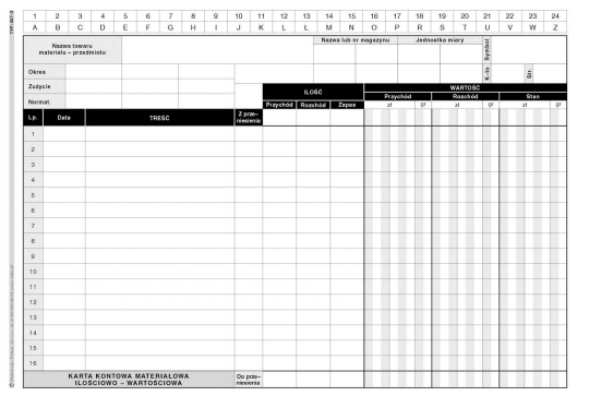 Karta kontowa materiałowa ilościowo - wartościowa