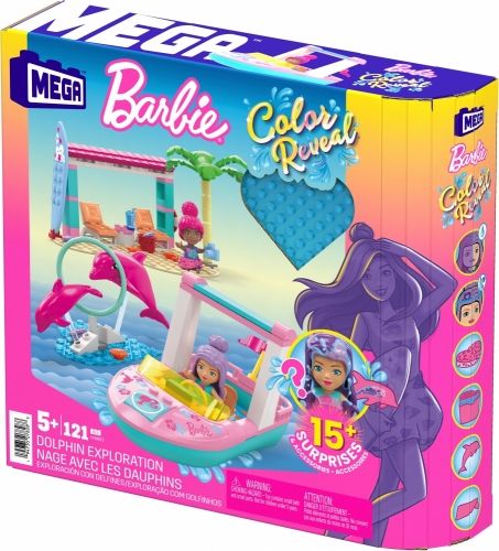 Zestawy konstrukcyjne MEGA™ Barbie® Color Reveal™ z niespodziankami kryją mnóstwo ekscytujących sekretów. Każda mikrolalka ma magiczną tajemnicę, która czeka na odkrycie. Rozpocznij odkrywanie, otwierając pojemnik, aby znaleźć 2 torebki-niespodzianki. W środku znajduje się ponad 10 niespodzianek, w tym 2 mikrolalki Color Reveal™. Napełnij pojemnik ciepłą wodą, umieść wewnątrz mikrolalkę i poruszaj nią, aby odsłonić jej wygląd. Następnie, aby czas na zmianę: zanurz gąbkę w zimnej wodzie i odkryj efekt. Użyj ciepłej wody, aby przywrócić wcześniejszy wygląd. Tę magiczną transformację możesz powtarzać tyle razy, ile chcesz. Włóż pozostałe tajemnicze przedmioty do ciepłej wody, aby odkryć więcej niespodzianek. Zbuduj łódź z dnem Color Reveal™, aby obserwować ryby i zabrać obie mikrolalki w fantastyczny rejs. Potem zbuduj obręcz do skakania, aby nauczyć delfiny nowych sztuczek. Gdy przyjdzie czas na odpoczynek, zbuduj plażową chatkę i baw się w słońcu. · Zestaw konstrukcyjny zawiera: 2 mikrolalki Barbie® Color Reveal™, 2 delfiny, 121 klocków (w tym elementy specjalne i akcesoria tematyczne) 1 pojemnik w kształcie serca oraz 2 podstawy w kształcie serca · Odkryj ponad 10 niespodzianek – co jeszcze znajdziesz? · Zbuduj łódź, obręcz do skakania dla delfinów i plażową chatkę · Klocki są kompatybilne ze wszystkimi zestawami konstrukcyjnymi MEGA™ i Barbie® oraz z klockami innych wiodących marek · Dzięki możliwości samodzielnego konstruowania dzieci rozwijają kreatywność i umiejętność rozwiązywania problemów. Idealne dla dzieci od 4 roku życia.Baterie: Nie wymaga bateriiWiek: 5Y+Opakowanie (szerokość): 26.2 cmOpakowanie (wysokość): 24.1 cmOpakowanie (głębokość): 5.7 cmOpakowanie (waga): 450 gPCB: 4EAN: 0194735078288