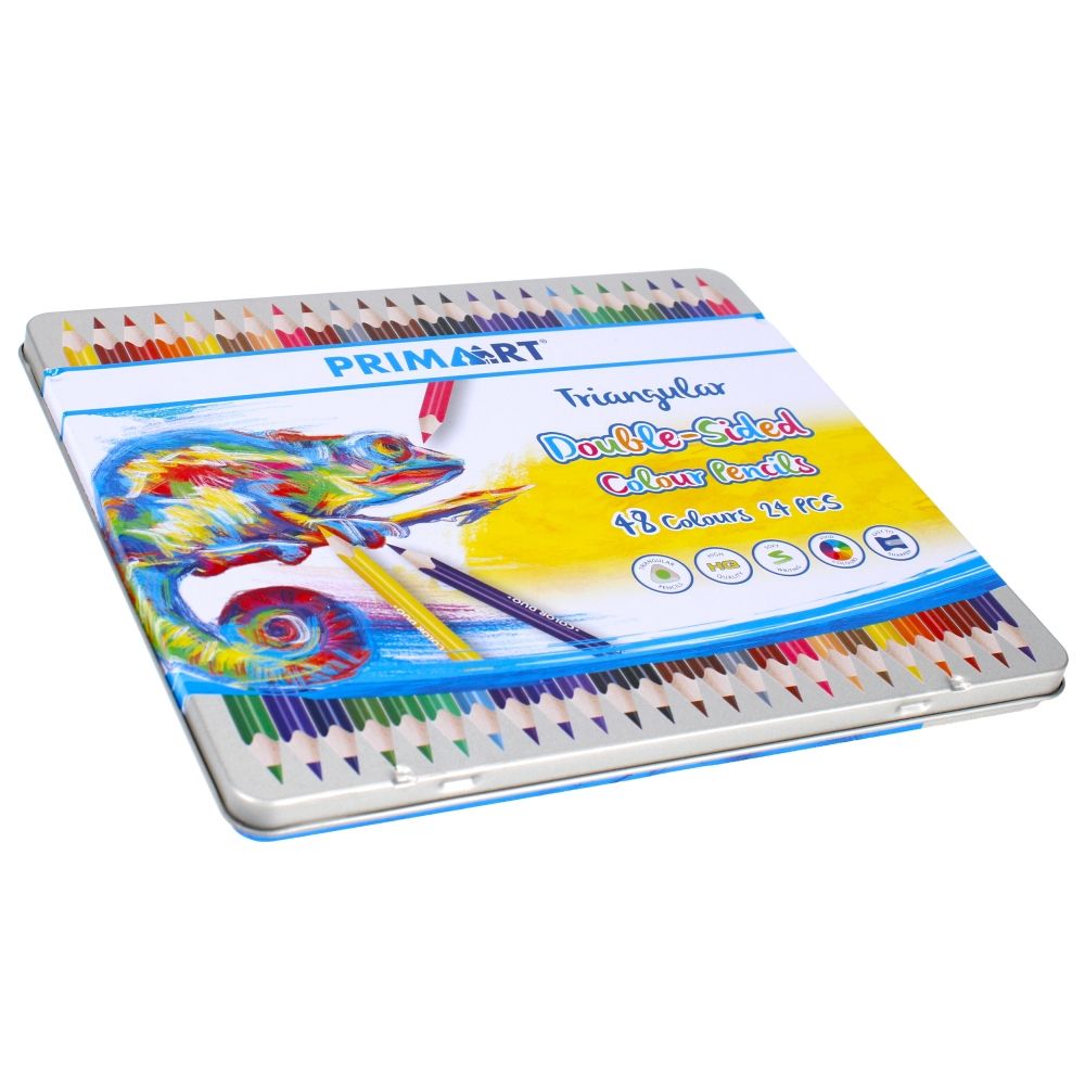 Zalety produktu: Kredki dwustronne w żywych kolorach o wysokiej jakości rysików zapewniają łatwość rysowania i dokładne pokrycie malowanej powierzchni. Nie łamią się podczas strugania, kredki trójkątne. Zestaw 24 kredek ołówkowych dwustronnych w 48 kolorach z kolekcji PRIMA ART. Zapoznaj się również z innymi produktami PRIMA ART Zawartość opakowania: 24 szt. trójkątnych kredek ołówkowych dwustronnych. Kredki wykonane z drewna. Wymiary/waga: wymiary produktu dł. cm : 18 cm, wymiary opakowania dł. x wys. x gł. cm : 21x19x2, waga produktu w opakowaniu kg : 0,31 kg. Nieodpowiednie dla dzieci poniżej 3 lat. Zapakowane w metalowe, zamykane pudełko, ułatwiające przechowywanie. Pakowane iner 12 szt. Karton 72 szt.