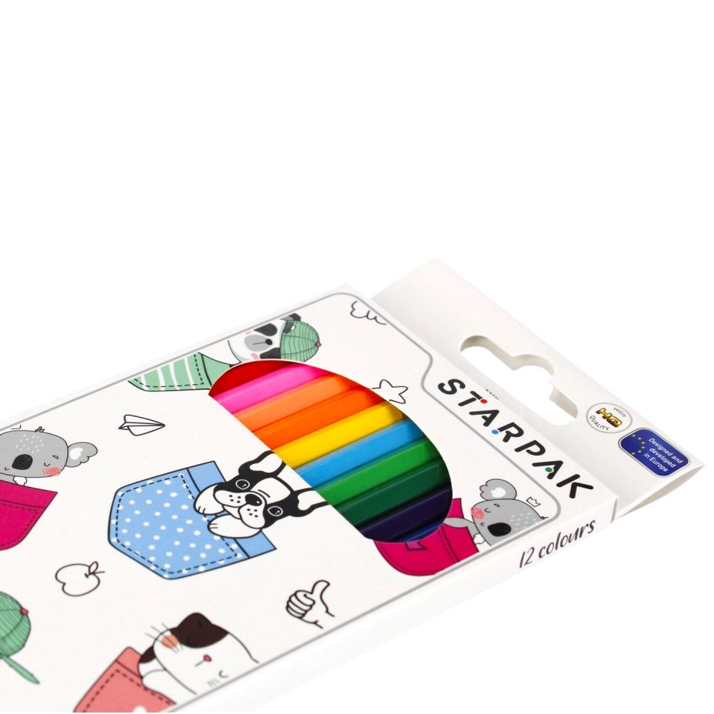 Zalety produktu: wysoka jakość rysików, najbardziej podstawowe przybory plastyczne w przedszkolu i szkole, żywe i intensywne kolory, łatwe w struganiu, nie łamią się, nie brudzą, pakowane w pudełko z systemem easy open dzięki, któremu można je łatwo otworzyć i potem zamknąć. Komplet 12 kredek STARPAK w kartonowym pudełku z serii Minisy. Kredki to najbardziej podstawowe przybory plastyczne. Wykorzystywane podczas zabawy i nauki w domu, przedszkolu i szkole. Wszystkie kredki STARPAK mają żywe kolory, dzięki czemu tworzone prace będą zachwycały intensywnością i nasyceniem barw. Kredki STARPAK są łatwe w struganiu i nie łamią się, co jest bardzo ważne, szczególnie dla młodszych dzieci. Dzięki tym kredkom można precyzyjnie rysować kształty i kontury oraz kolorować. Zmieniając nacisk można uzyskać bardziej lub mniej intensywny kolor. Zapoznaj się również z innymi produktami STARPAK z serii Minisy Zawartość opakowania: 12 kredek ołówkowych w 12 kolorach. Kredki wykonane z kolorowanego węgla drzewnego grafit w drewnianej osłonce. Wymiary/waga: wymiary produktu dł. cm : 18 cm, wymiary opakowania wys. x szer. x gł. cm : 21x9x1, waga produktu bez opakowania 1 szt. kg : 0,01 kg, waga produktu w opakowaniu kg : 0,07 kg. Produkt przeznaczony dla dzieci w wieku: 3 . Kredki pakowane w kartonik.