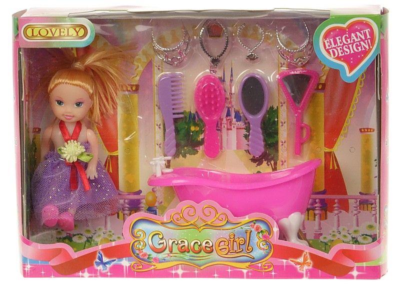 lalka mini z wanną i akcesoriami; 20x14,5x4,8cm, W/B