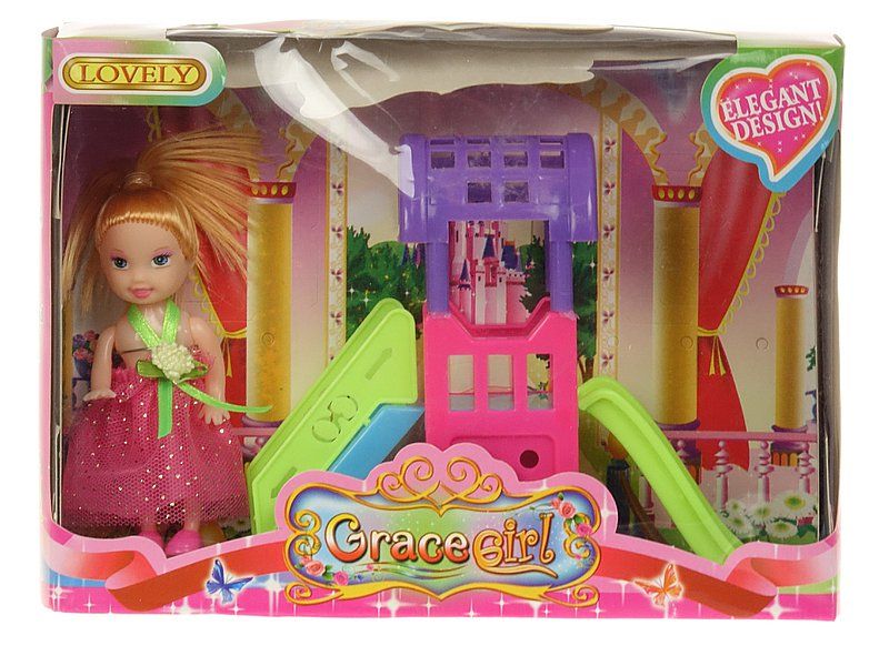 lalka mini z placem zabaw; 20x14,5x4,8cm, W/B