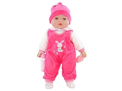 Seria: bobas 45cm, smoczek + butelka, z dźwiękiem: śpiewa i mówi po polsku, torba PVC