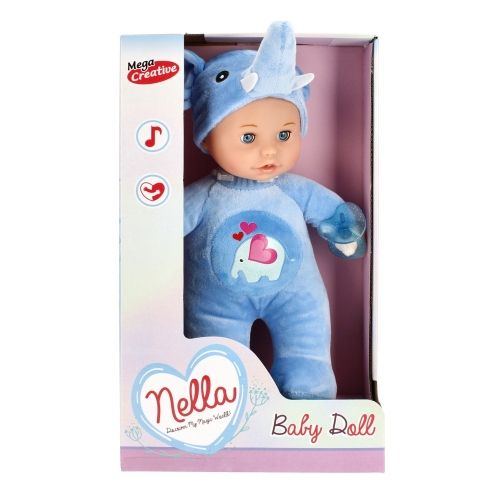 Zalety produktu: nauka odpowiedzialności za drugą osobę, nauka samodzielności, rozwijanie wyobraźni dziecka, lalka w ubranku zwierzątka z czapką z trąbą słonia na głowie, lalka po naciśnięciu na brzuszek gra uspokajające piosenki, w tle słychać ćwierkające ptaszki oraz świci się słonik na ubranku na różne kolory, lalka rusza oczami oraz można jej wsadzić do buzi smoczek z zestawu. Lalka Bobas od MEGA CREATIVE to bez wątpienia świetna propozycja zabawy dla Twojej pociechy. Oprócz radości wynikającej z możliwości zajmowania się swoją Lalką jak prawdziwym dzieckiem, to także dobry pomysł na naukę samodzielności oraz odpowiedzialności za drugą osobę! Zawartość zestawu: lalka bobas w ubranku, smoczek. Zabawka wykonana z miękkiej gumy oraz pluszu. Wymiary/waga/baterie: wymiary produktu (dł.) [cm]: 30 cm, wymiary opakowania (dł. x wys. x gł.) [cm]: 20x35x11, waga produktu bez opakowania [kg]: 0,25 kg, waga produktu w opakowaniu [kg]: 0,45 kg, wymaga zasilania bateriami 2 x AAALR03- nie załączono do zestawu. Lalka przeznaczona dla dzieci w wieku: 3+. Pakowana w kartonikmz okienkiem. W kartonie zbiorczym po 24 szt.