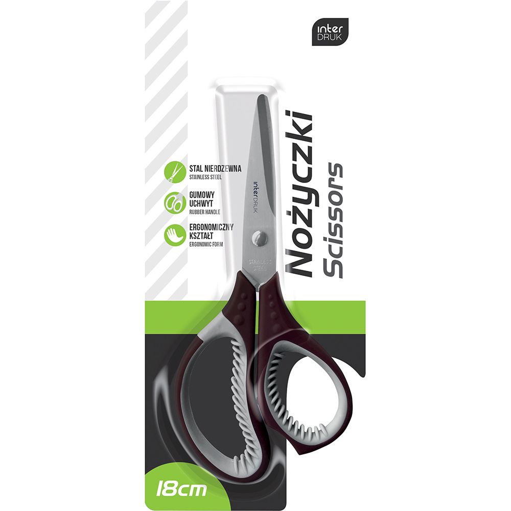Strona główna » Biuro » Akcesoria biurowe » Nożyczki, noże » Nożyczki » Nożyczki Interdruk 18cm (INOOF)