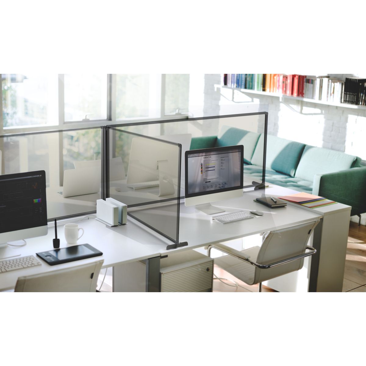 Osłona ochronna MEMOBE, pleksi bezbarwne, rama aluminiowa, metalowa podstawa z regulacją wysokości srebrna, 65x60 cm