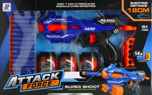 Zalety produktu: pistolet lekki i wygodny w trzymaniu, miękkie i nie szkodliwe pociski piankowe, rozwijanie zdolności motorycznych i koncentracji, uczy zasad gry fair-play. Pistolet MEGA CREATIVE zapewni niezwykle emocjonującą zabawę każdemu dziecku, zarówno dużemu jak i małemu! Zawartość zestawu: pistolet, 14 zupełnie bezpiecznych piankowych pocisków, 3x tarcza beczka, magazynek na pociski. Strzałki trzeba umieścić w magazynku - po naciśnięciu spustu, nastąpi wystrzał z pistoletu. Nie należy strzelać do zwierząt! Zabawka wykonana z plastiku i pianki. Wymiary/waga/baterie: wymiary produktu (dł. x wys. x gł.)[cm] -pistolet 30x16x4, wymiary opakowania (dł. x wys. x gł.) [cm]: 45x28x5, waga produktu bez opakowania [kg]: 0,33 kg, waga produktu w opakowaniu [kg]: 0,54 kg, nie wymaga zasilania bateriami. Zestaw przeznaczony dla dzieci w wieku: 8+. Pakowany w kartonik z okienkiem. W kartonie po 48 szt.