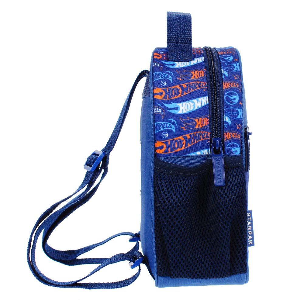 Cechy produktu: mały, poręczny plecak dla przedszkolaka, pojemna komora wyścielona podszewką która jest łatwa w czyszczeniu, 1 przednia kieszeń, 1 boczna kieszonka na bidon, regulowane szelki, wytrzymałe zamki błyskawiczne, na plecach kieszonka na wizytówkę, posiada z boku odblaskowy pasek dla lepszej widoczności. Plecak mini STARPAK to mały, ale bardzo poręczny plecak dla najmłodszych dzieci. Idealny do przedszkola. Dzięki temu dziecko może zabrać ze sobą np. ukochaną zabawkę. A jak wiadomo, bez niej wyjście do przedszkola może być trudnym przeżyciem dla dziecka i dla rodziców. Plecak mini STARPAK ma jedną komorę i 1 przednią kieszonkę. Obie zamykane na wytrzymałe zamki błyskawiczne. Komora jest wyścielona podszewką, która chroni plecak przed zabrudzeniem i jest bardzo łatwa w czyszczeniu. Dzięki regulowanym szelkom można je łatwo dopasować do wzrostu dziecka. Dodatkowo na plecach znajduje się specjalna kieszonka na wizytówką. Pozwala to podpisać plecak STARPAK. Plecak w granatowych kolorach. Zapoznaj się również z innymi produktami STARPAK z licencji Hot Wheels. Produkt przeznaczony dla dzieci w wieku: 3 . Wymiary produktu dł. x wys. x gł. cm : 20x25x9, waga produktu kg : 0,18 kg. Plecak pakowany w folijkę.
