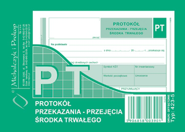 PT protokół przekazania/środka trwałego A6 423-5PT protokół przekazania/środka trwałego A6 423-5