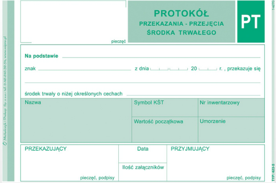Strona główna » DRUKI » MICHALCZYK I PROKOP » DRUKI KASOWE, KSIĘGOWE I BANKOWE » PT protokół przekazania/środka trwałego A6 423-5