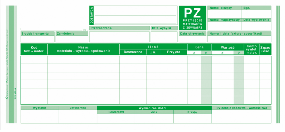 Strona główna » DRUKI » MICHALCZYK I PROKOP » OBRÓT TOWAROWY, MATERIAŁOWY ORAZ MAGAZYNOWY » PZ przyjęcie materiałów z zewnątrz 1/3 A4 352-8