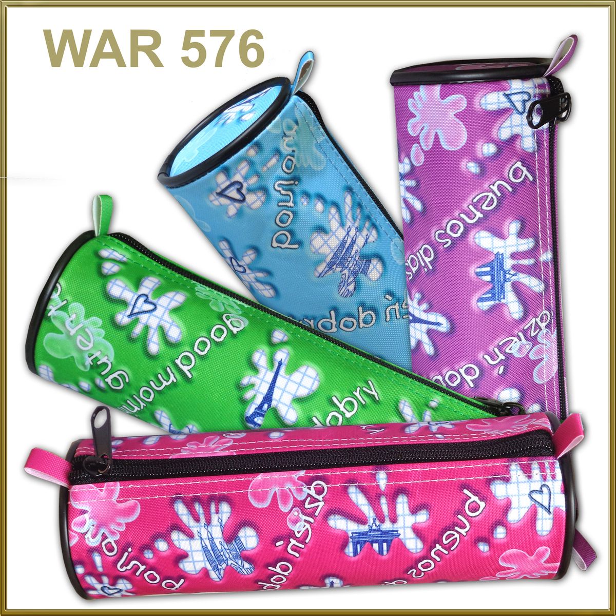 Piórnik tuba wykonany z kodury, ozdobionej nadrukiem przedstawiającym dymki/kleksy wykonanym w technologii sublimacji. Piórnik o wymiarach 21x7[cm]. Pakowany po 25 sztuk w 5 wersjach kolorystycznych, zielony, szary, niebieski, różowy, fioletowy.Piórnik bez wyposażenia.