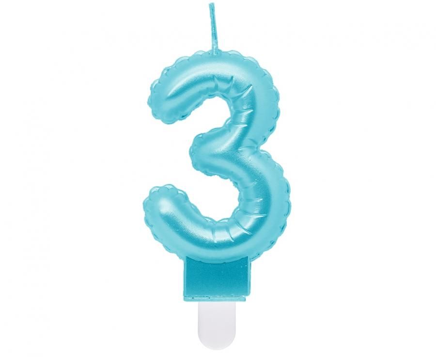 Seria: cyferka 3, perłowa jasnoniebieska, 7 cm
