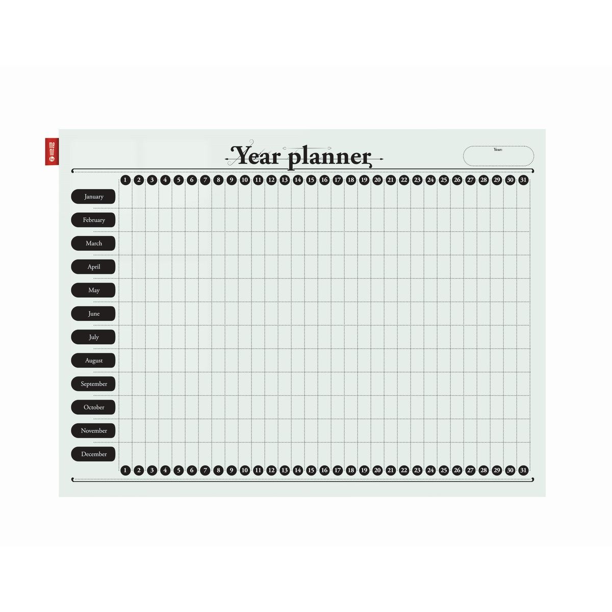 - tablica z powierzchnią suchościeralno-magnetyczną z nadrukowanym terminarzem do planowania tygodniowego, miesięcznego lub rocznego