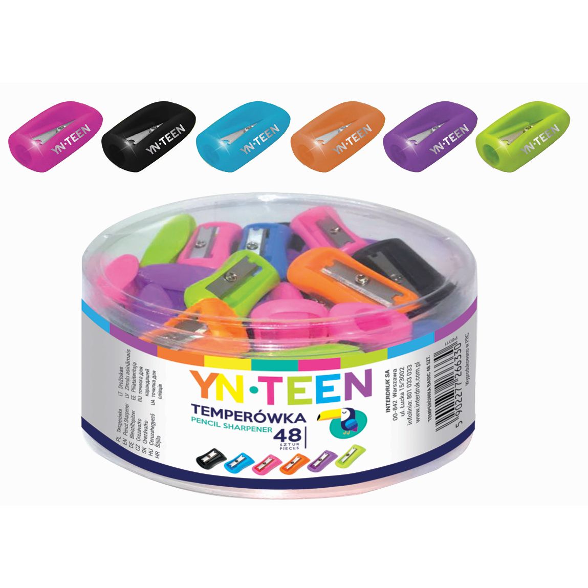 Temperówka z jednym ostrzem. Dostępna w 6 kolorach: różowym, czarnym, niebieskim, pomarańczowym, fioletowym i zielonym. 48 szt. w displayu.