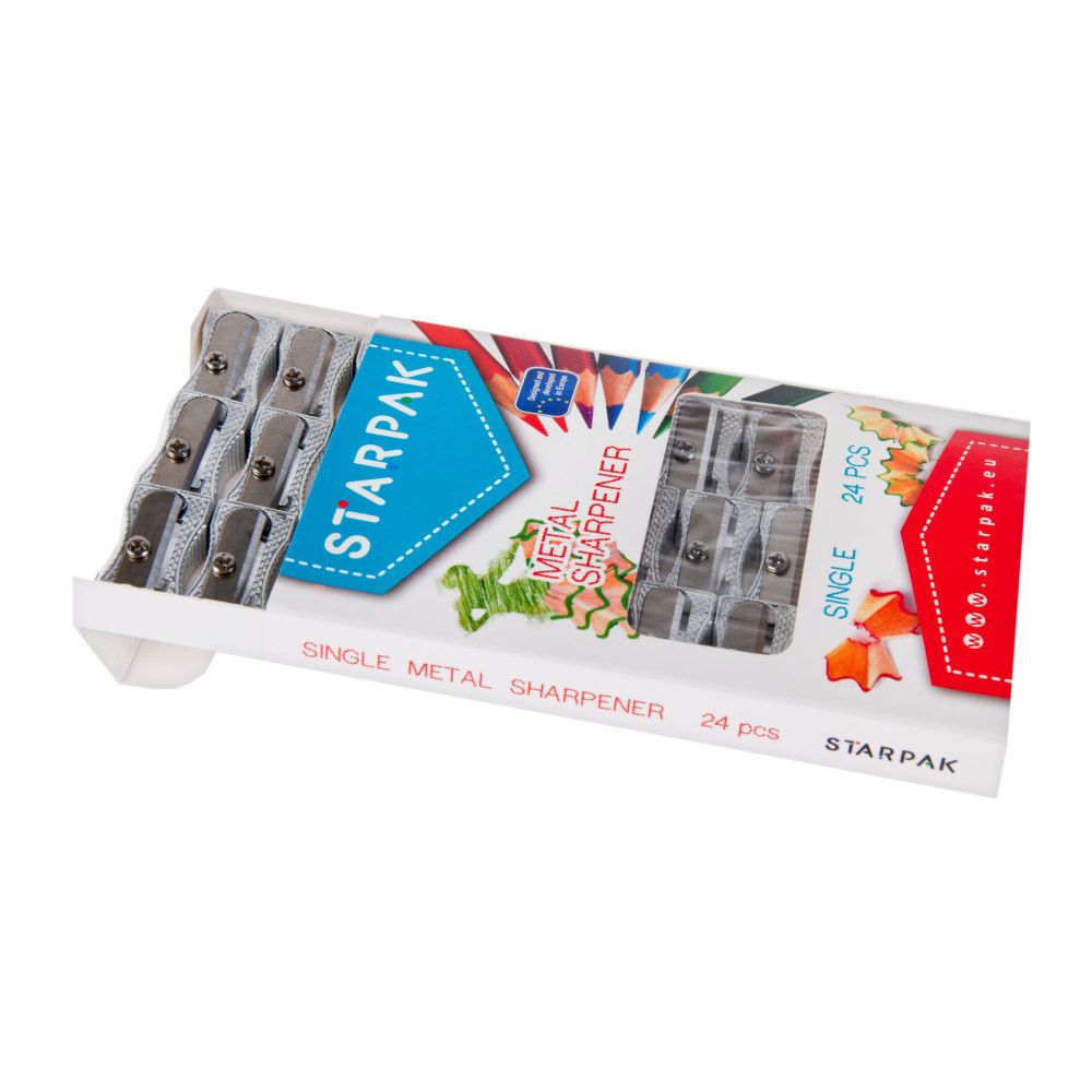 Zalety produktu: Temperówka z kolekcji STARPAK Temperówka posiada jedno ostrze do ostrzenia kredek w standardowym rozmiarze. Zapoznaj się również z innymi produktami Starpak Produkt pakowany w opakowanie po 24 szt.. Przeznaczony dla dzieci w wieku: 3 . Wymiary opakowania wys.x szer. x gł. cm 1x8x11.