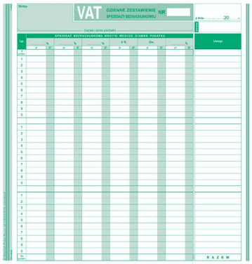 VAT - kontrolka sprzedaży - dzienne zestawienie sprzedaży bezrachunkowej