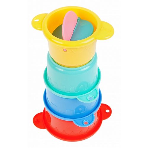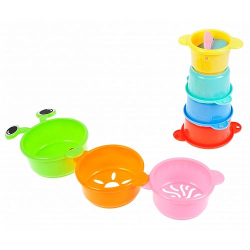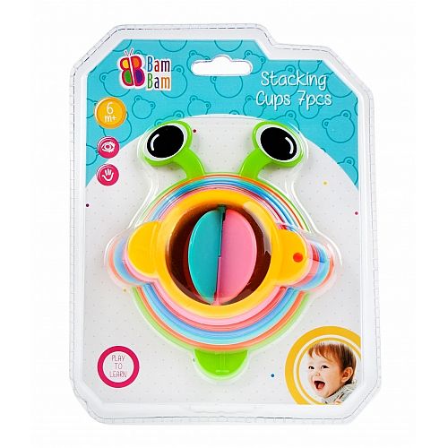 Zestaw 7-miu kreatywnych KUBECZKÓW Bam Bam od 6 m-ca życia. Siedem różnokolorowych kubeczków umożliwia dzieciom łączenie ich na wiele sposobów. W tym na budowanie barwnego węża zakończonej kubeczkiem z wirniczkiem. Doskonale sprawdzają się także jako zabawka do kąpieli, umożliwiając przelewanie wody. Dzięki zabawie kubeczkami maluch uczy się rozpoznawania kształtów, kolorów, posługiwania się przedmiotami i dopasowywania ich od siebie, a także kreatywnego i logicznego myślenia. Rozwija koordynację ruchową oraz zdolności manualne, rozwija wyobraźnię. Wymiry/waga/baterie: wymiary produktu dł. x wys. x gł. cm : 12x8x12, wymiary opakowania 16x20x8, waga produktu w opakowaniu kg : 0,14 kg. Zabawka pakowana na blistrze.