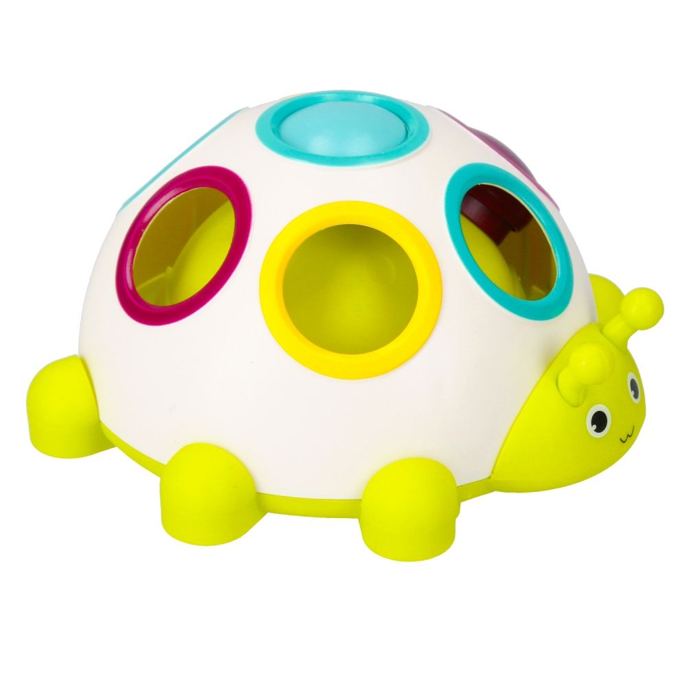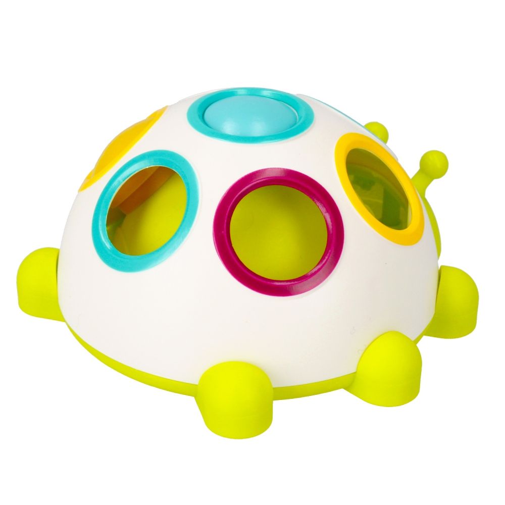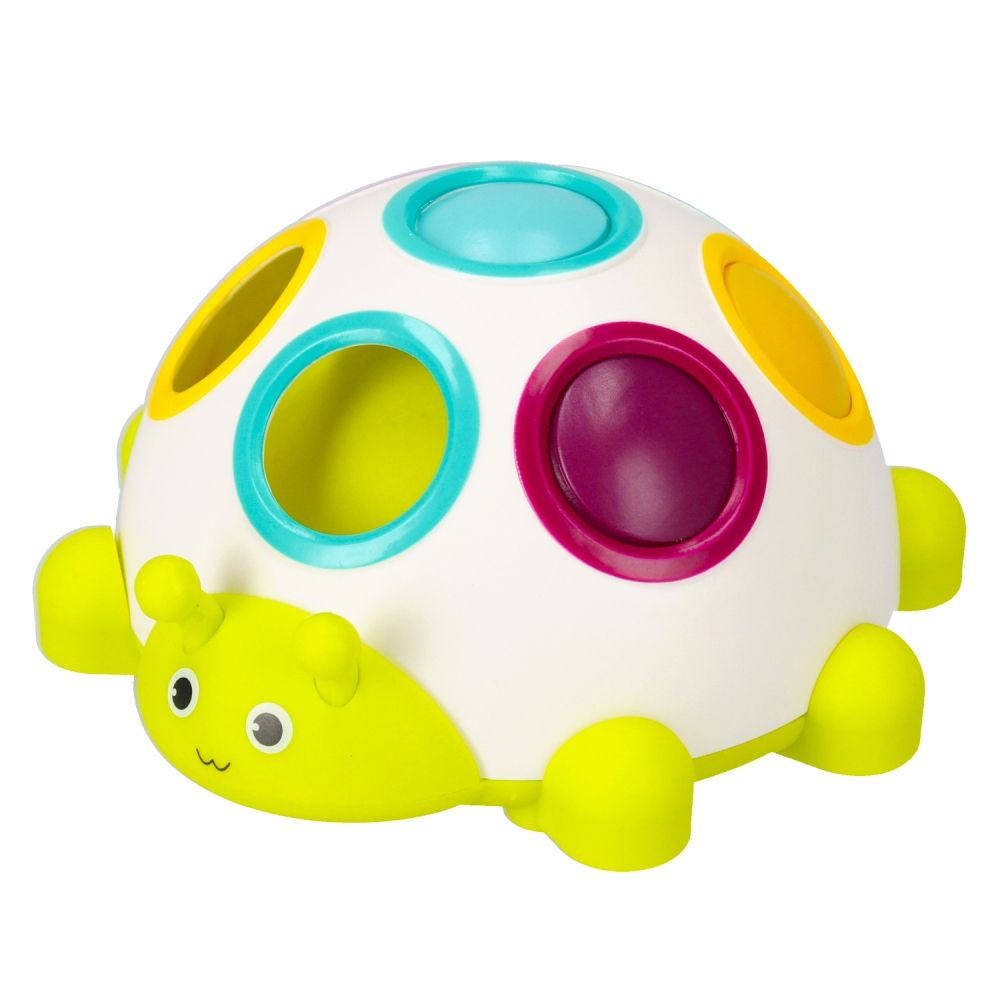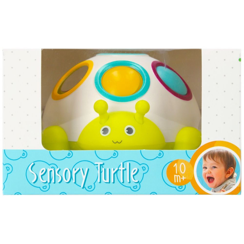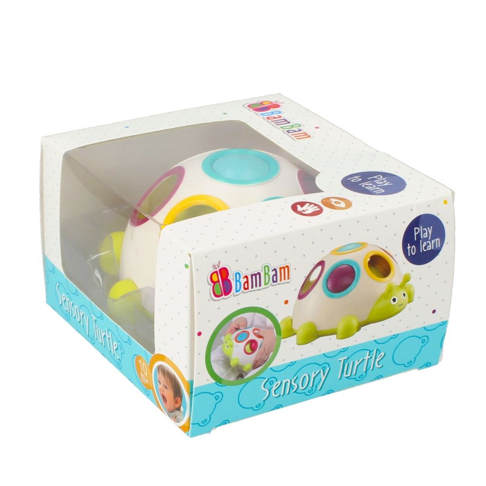 Sensoryczny Żółwik Bam Bam to zabawka edukacyjna, zapewniająca masę wrażeń i doznań zmysłowych dla malucha. Postać jeżyka z wypukłymi, kolorowymi półkulami umożliwia wspieranie rozwoju zdolności manualnych, motoryki małej i zręczności. Różnorodne materiały i tekstura stymulują wrażliwość dotykową dziecka i pozwalają mu zrozumieć ich różnorodność. Możliwość przesuwania kolorowych półkul i dopasowania ich kolorystycznie do odpowiednich obręczy wspiera abstrakcyjne myślenie, uczy zasad logicznego myślenia i zależności. Zabawka wykonana z najwyższej jakości materiałów, bez ftalanów, zgodna z normą EN- 71 oraz CE, zapewniająca bezpieczną zabawę. Wymiary/waga/baterie: wymiary produktu dł. x wys. x gł. cm : 12x6x11, wymiary opakowania dł. x wys. x gł. cm : 13x8x12, waga produktu bez opakowania kg : 0,07 kg, waga produktu bez opakowania kg : 0,11 kg, nie wymaga zasilania bateriami. Zabawka przeznaczona dla dzieci w wieku: 10m . Pakowana w kartonik z okienkiem.