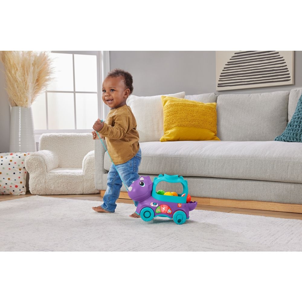 Wybierz się na wesoły spacer z tą zabawką Dinuś Podskakujące piłeczki od Fisher-Price®. Wielbiciele dinozaurów mogą popychać lub ciągnąć przyjaznego triceratopsa, aby zobaczyć, jak kolorowe piłeczki podskakują w środku zabawki. Aby zabawa była bardziej angażująca, dzieci mogą naciskać 3 przyciski, aby aktywować edukacyjne treści uczące literek, liczenia, kolorów i kształtów. Naciśnij przycisk globusa, aby wybrać język: polski, węgierski, czeski, słowacki lub angielski. · Interaktywny zabawkowy dinozaur do ciągnięcia z podskakującymi piłeczkami, światełkami oraz ponad 40 aktywacjami (piosenki, dźwięki i wypowiedzi) · Mali wielbiciele dinozaurów mogą popychać lub ciągnąć triceratopsa, aby zobaczyć podskakujące kolorowe piłeczki oraz aktywowane ruchem światełka i dźwięki · 3 poziomy nauki wprowadzają malucha w świat literek, liczenia, kolorów i kształtów. Naciśnij przycisk globusa, aby wybrać język: polski, węgierski, czeski, słowacki lub angielski · W zestawie są 4 piłeczki do chwytania i wrzucania do zabawki · Pomaga dzieciom od 12 do 36 miesiąca wzmacniać zręczność i sprawność ruchowąBaterie: Nie wymaga bateriiWiek: 12 - 36MProdukt w języku polski: TakOpakowanie (szerokość): 35.6 cmOpakowanie (wysokość): 25.4 cmOpakowanie (głębokość): 15.9 cmOpakowanie (waga): 0 gPCB: 1EAN: 0194735 14817 2