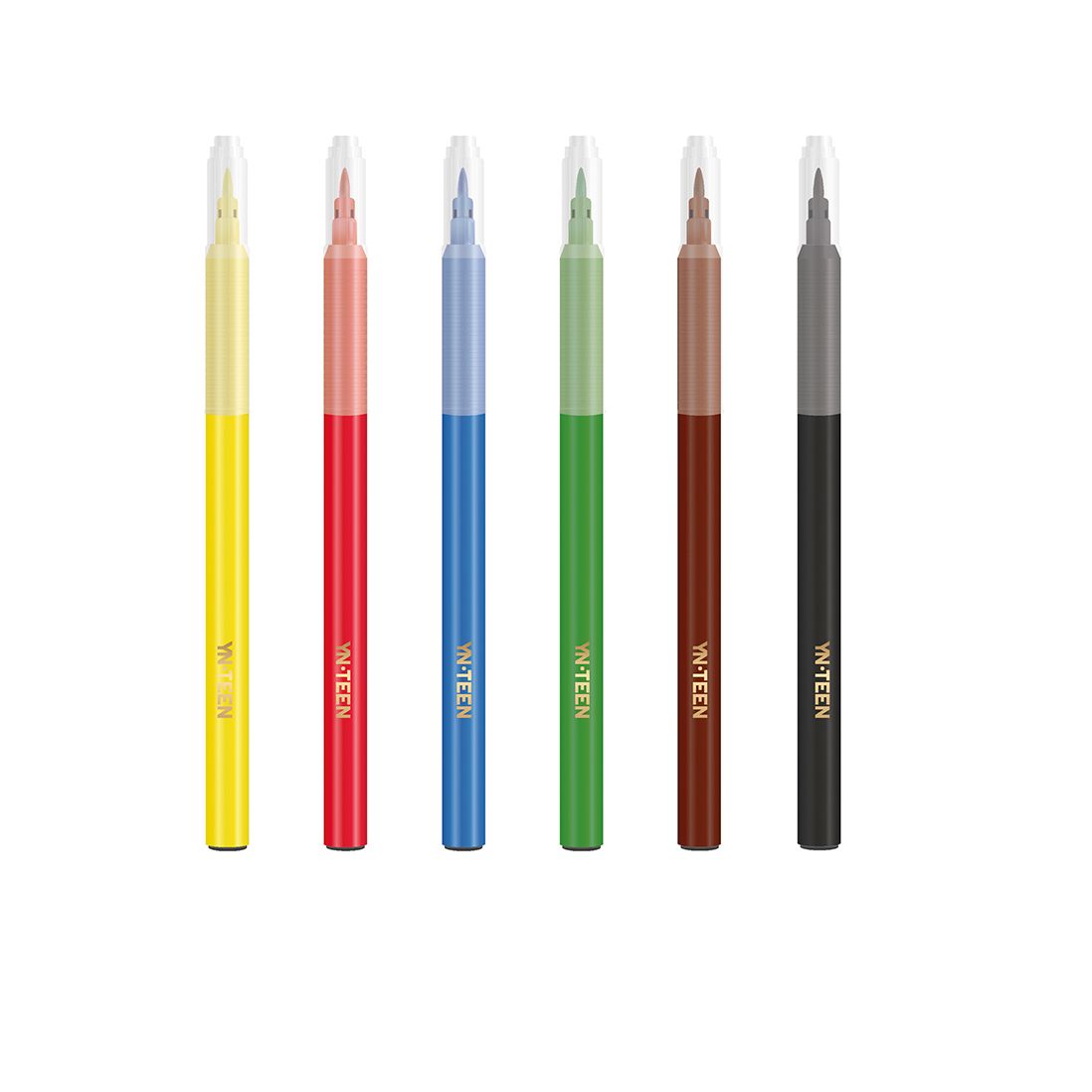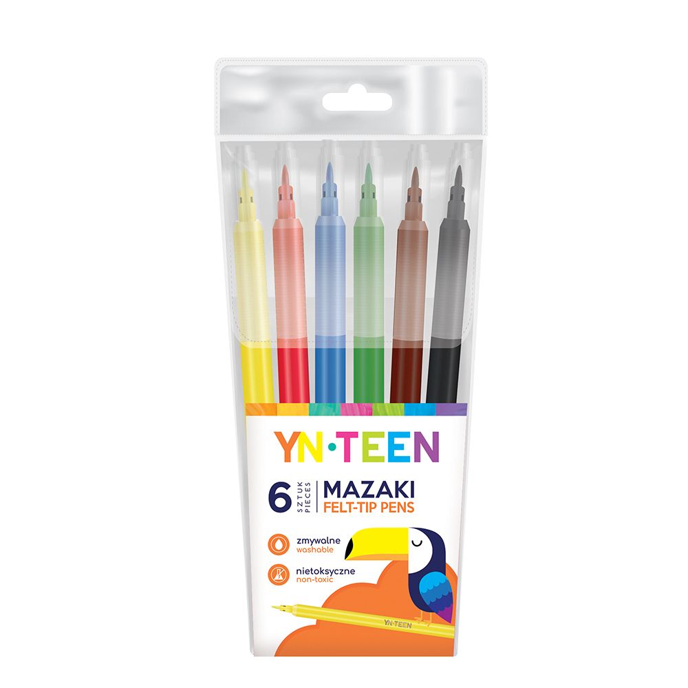 Mazaki o okrągłym profilu i przezroczystej, wentylowanej skuwce. 6 kolorów w opakowaniu. Nietoksyczny, łatwo zmywalny tusz na bazie wody umożliwia bezpieczne użytkowanie i twórczą zabawę bez ograniczeń. Wygodne w przechowywaniu i transporcie, dzięki miękkiemu etui.