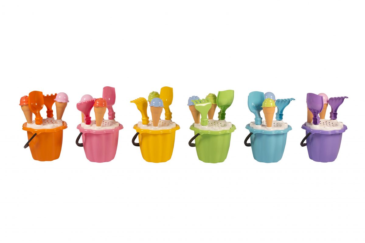 Zestaw do piasku pełny możliwości!Zestaw do piasku to nieodłączny element każdej wyprawy na plażę czy też do piaskownicy. Prezentujemy zestaw, który pozwoli dziecku stworzyć własną lodziarnię lub cukiernię. Zestaw składa się z:wiaderkasitkagrabekłopatki2 foremek w kształcie lodówPrezentowany zestaw pozwala nie tylko na budowanie babek z piasku czy zamku ale również ciasteczek oraz lodów. Dziecko uczy się odgrywania ról co korzystnie wpływa na kreatywność i wyobraźnię. Z takim zestawem dziecko chętniej spędza czas na świeżym powietrzu! Produkt zapewnia wiele godzin kreatywnej zabawy!Zestaw do zabawy w piasku z kolorowymi akcesoriamiKolorowe wiaderko z sitkiem, grabki, łopatka i foremki lody– ten zestaw zawiera wszystko co jest niezbędne, aby zapewnić maluchowi świetną zabawę w piaskownicy! Wszystkie elementy wyróżniają się atrakcyjną, żywą kolorystyką która sprawia, że dziecko z chęcią po nie sięga. Znajdujące się w tym zestawie rozmaite akcesoria pozwalają maluchowi uruchomić wyobraźnię i tworzyć fantazyjne piaskowe formy. W ten sposób wspierają jego rozwój manualny oraz kreatywność. Zestaw wyróżnia się trwałością, jest odporny na warunki atmosferyczne i takie czynniki jak deszcz, słońce lub wysokie temperatury.Idealny zestaw do zabawy dla kreatywnych maluchówJeśli Twoje dziecko lubi bawić się w piasku, kolorowy zestaw akcesoriów z naszej oferty z pewnością zyska sobie jego sympatię i przyniesie maluchowi całe mnóstwo radości! Zestaw akcesoriów do piasku może stać się nieodłącznym towarzyszem każdej letniej wycieczki. Dziecko z pewnością znajdzie dla niego wiele zastosowań w trakcie pobytu na działce, nad jeziorem lub nad morzem. Zestaw okaże się też niezwykle przydatny podczas zabaw w ogrodowej piaskownicy lub na osiedlowym placu zabaw.Ostrzeżenia!Zabawka odpowiednia dla dzieci w wieku powyżej 1 roku życia. Opakowanie nie jest zabawką, dlatego zakazuje się udostępniania opakowania dzieciom do zabawy.