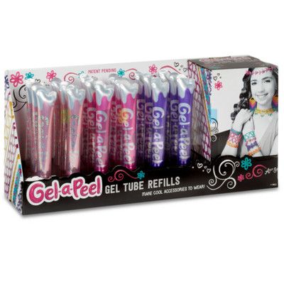 -Gel-a-Peel to kreatywne zestawy, dzięki którym dziewczynki wyczarują fantastyczne ozdoby, biżuterię czy gadżety w wymiarze 3D. Z żelowej masy o najróżniejszych kolorach - od delikatnych pasteli, poprzez jaskrawe barwy, do brokatowych odcieni w stylu glamour - stworzyć można, co tylko podpowie fantazja. Tubki z masą żelową skonstruowano tak, by jednocześnie stanowiły narzędzie do wyciskania. Końcówki tubek są wymienne, dzięki czemu wyciśnięty żel tworzy różne wzorki i motywy. Gel-a-Peel to innowacyjny pomysł na kreatywną zabawę. Wystarczy wycisnąć masę według wzoru albo własnego pomysłu, poczekać aż żel wyschnie, następnie odkleić go od podkładki i gotowe! Możemy cieszyć się nową, odjazdową bransoletką, kolczykami, charmsami, nakładką na ołówek, a nawet etui na telefon!