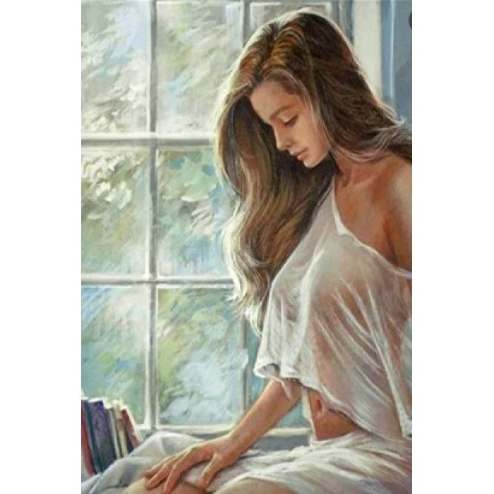 Seria: malowanie po numerach - akt kobieta przy oknie