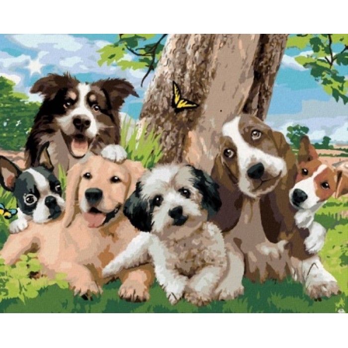 Seria: malowanie po numerach - pieski pod drzewem