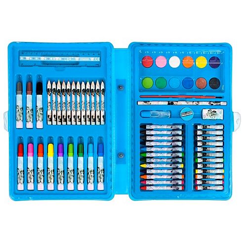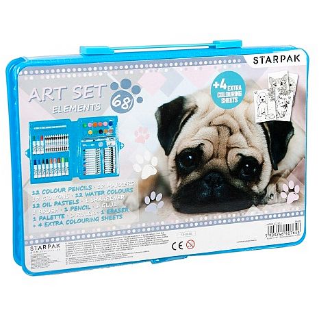 Zestaw przyborów szkolnych z kolekcji Starpak z licencją Cuties dla małych artystów pomagający rozwijać im kreatywność i poznawać nowe techniki malarskie. Zestaw składa się z 68 elementów: 12 pisaków, 12 kredek woskowych oraz 12 kredek ołówkowych, 12 pasteli, 12 farb akwarelowych, pędzla, temperówki, ołówka, gumki do mazania, kleju, linijki, palety do malowania i 4 kartek ze szkicem do kolorowania. Wszystkie elementy zestawu są wykonane z wysokiej jakości materiałów co zapewni długie użytkowanie. Cały zestaw jest zorganizowany w jednej, zamykanej walizeczce z rączką, ułatwiającej przechowywanie i przenoszenie. Zapoznaj się również z innymi produktami Starpak z serii Cuties Produkt przeznaczony dla dzieci w wieku: 3 . Wymiary produktu wys.x szer. x gł. cm : 22x31x4. Waga produktu kg. 0,40 kg. Pakowanie iner 6szt, karton 12szt