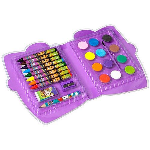 Zalety produktu: Poręczny zestaw artystyczny z licencją Psi Patrol, który idealnie mieści się w dziecięcym plecaku. W skład zestawu wchodzi 28 elementów, w tym: 8 kredek woskowych, 12 farb akwarelowych, pędzelek, ołówek, temperówka, gumka do mazania i 4 kolorowanki z ulubionymi bohaterami. Wszystko zapakowane w kolorowe, trwałe pudełko. Wymiary/waga/baterie: wymiary produktu dł. x wys. x gł. cm :14x20x3, waga produktu kg : 0,13 kg. Zestaw przeznaczony dla dzieci w wieku: 3 .