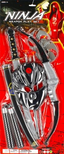 Zalety produktu: idealne uzupełnienie stroju dla bojownika, rozwijanie wyobraźni poprzez różne scenariusze zabawy, rozwijanie pasji. Odwaga, honor, szlachetna postawa to cechy prawdziwego wojownika, z zestawem rycerskim Ninja od MEGA CREATIVE Twoja pociecha będzie mogła odkryć te wszystkie cechy u siebie! Zawartość zestawu: miecz, maska, łuk + 3 strzały, pałki z łańcuchem. Zestaw wykonany z plastiku, wszystkie produkty są imitacją prawdziwych. Wymiary/waga/baterie: wymiary produktu (dł.)[cm]: miecz- 50 cm, maska- 15x20x2, wymiary opakowania (dł. x wys. x gł.) [cm]: 30x70x4, waga produktu w opakowaniu [kg]: 0,32 kg, nie wymaga zasilania bateriami. Zestaw przeznaczony dla dzieci w wieku: 3+. Zestaw pakowany na blistrze. W kartonie zbiorczym po 18/36 szt