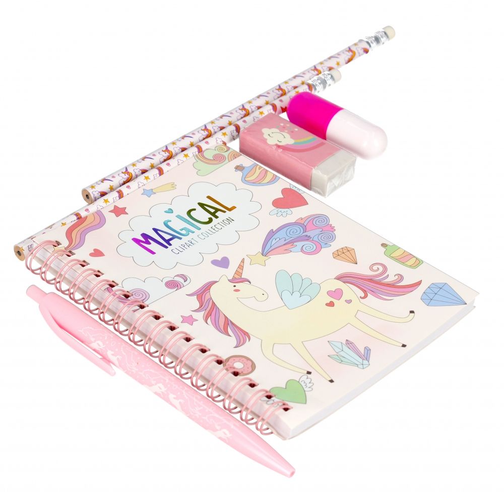 Zalety produktu: Zestaw szkolny to niezbędnik na każdym biurku. Praktyczne i podstawowe przybory jakie muszą się znaleźć na biurku każdego dziecka, zestaw z wizerunkiem Jednorożca jeszcze bardziej zachęca Twoją pociechę do korzystania z niego. Pakowany w przezroczystym piórniku zamykanym na zamek strunowy zipp. Zawartość zestawu: piórnik przezroczysty, notesik na spirali, 2 x ołówek, 1 x długopis automatyczny, zakreślacz mini, gumka, temperówka. Zapoznaj się również z innymi produktami z linii STARPAK. Wymiary opakowania-piórnik dł. x wys. x gł. cm 16x23x2, waga opakowania kg. 0,16 kg. Pakowany w kartonie zbiorczym po 6/72szt. Przeznaczony dla dzieci w wieku 3 .